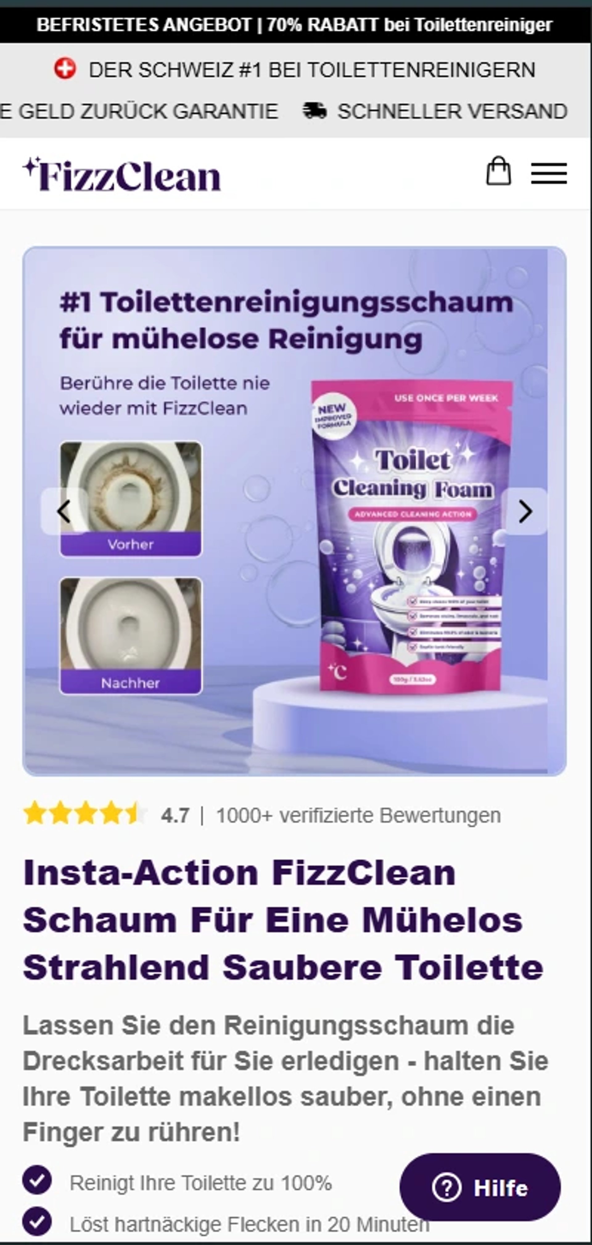 Suchen Sie nach einer effektiven Lösung, um hartnäckigen Urinstein zu entfernen und Kalkablagerungen ohne mühsames Schrubben loszuwerden? In unseren FizzClean FAQs beantworten wir die häufigsten Fragen zu unserem innovativen Nano-Schaumreiniger. Erfahren Sie alles über die sichere Anwendung in der Toilette, die Verträglichkeit für Abflussrohre und warum so viele Kunden positive FizzClean Erfahrungen teilen. Unser Ziel ist es, Ihnen eine hygienische Tiefenreinigung zu ermöglichen, die Zeit spart und Ihre Sanitäranlagen schont.